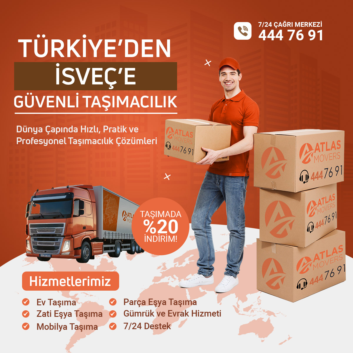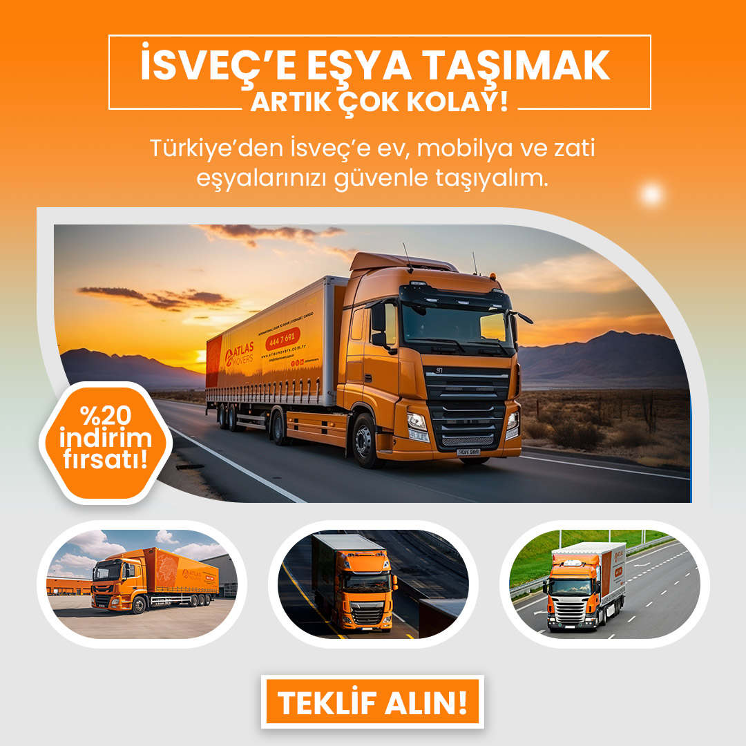İsveç’e taşınırken profesyonel destek almak, tüm süreci sorunsuz ve güvenli hale getirir. Atlas Lojistik olarak, Türkiye’den İsveç’e ev taşıma sürecinizde yanınızdayız. Hızlı, güvenilir ve gümrük süreçlerine hakim uluslararası taşımacılık hizmetimizle; eşyalarınız zamanında ve sorunsuz şekilde yeni adresinize ulaştırılır.
